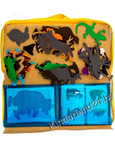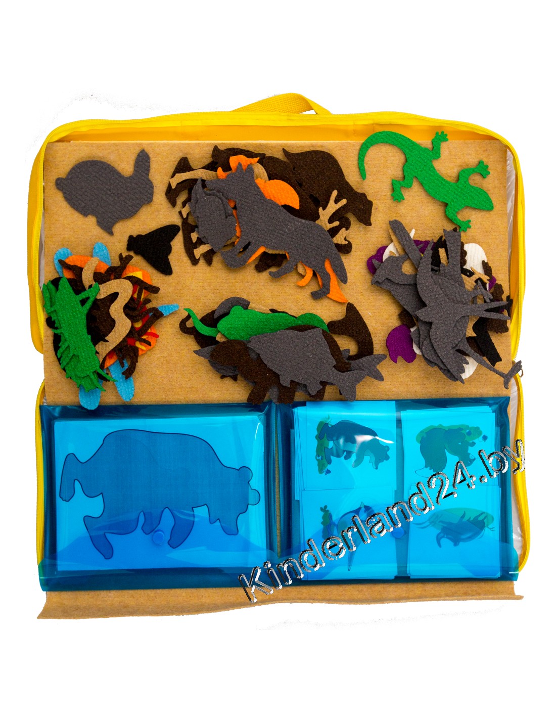 Уникальный комплект, состоящий из набора ковролиновых силуэтов и карточек позволяет проводить целенаправленную работу по ознакомлению детей с окружающим миром, формированию элементарных математических представлений, развитию речи и обучению элементам грамоты.
