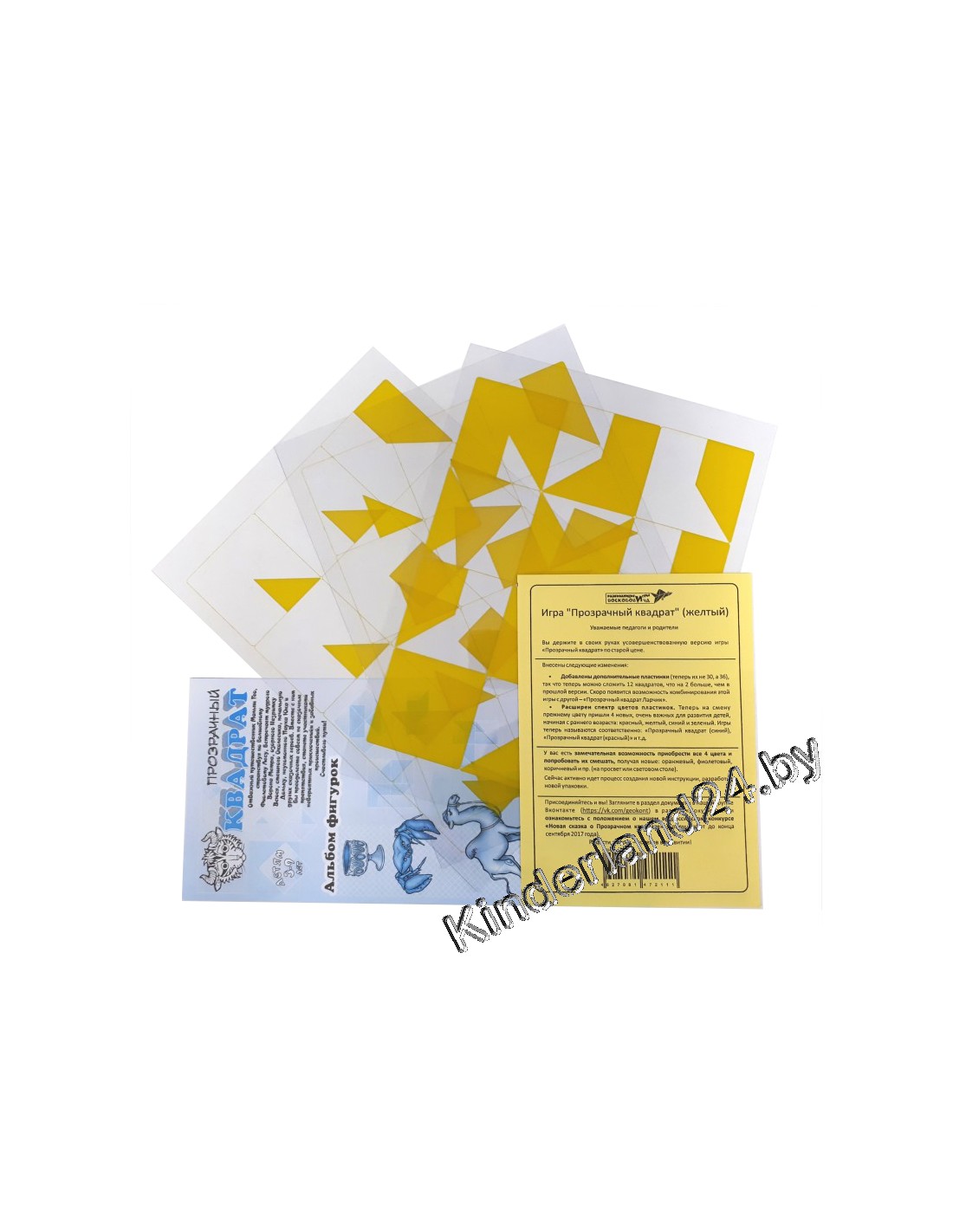 - 36 пластинок из прозрачного пластика (62х62 мм) с нанесенными изображениями геометрических фигур;