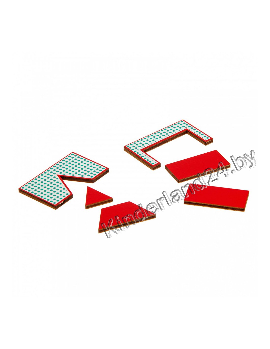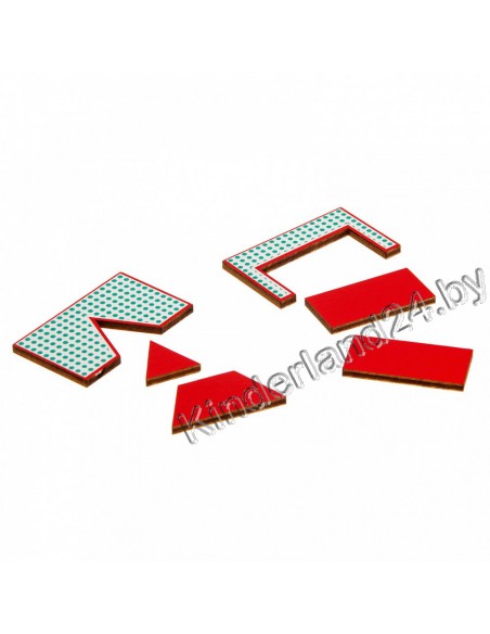 - фигуры-вкладыши (фанера, белая пленка, шелкография): 3 эталонные фигуры (круг, треугольник, квадрат) и 6 составных, подвижная линейка, части эталонных фигур;